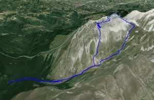 2020-08-13 Grotta del Capraro e M. Corvo 2020-08-13 Grotta del Capraro e M. Corvo Localita' di partenza – Masseria Cappelli, strada sterrata dalla diga di Provvidenza, SS80 (TE) Coordinate e quota partenza (WGS84) – 42.491060, 13.444678, 1262 metri Distanza percorsa – 14.00 Km Salita accumulata – 1400 metri Durata dell’escursione – 8 ore 35 minuti Mappa dell'escursione Profilo altimetrico dell'escursione Vista 3D dell'escursione Sono passate poche settimane e siamo tornati di nuovo sul Monte Corvo, passando dalla Grotta del Capraro, antico rifugio pastorale posto sul versante Sud della montagna, a 2400 metri di quota. Per questa bella escursione mi accompagnano Anna, Rita, Roberta e mio fratello Roberto. Ci vediamo presto nei pressi di Fonte Cerreto, all'imbocco della strada del Vasto, visto che la SS80 è chiusa per i danni del devastante incendio che ha colpito la zona di Arischia, pochi giorni fa. Raggiungiamo la diga di Provvidenza e affrontiamo la parte più complicata dell'escursione: i quasi 5 km di strada sterrata che portano alla Masseria Cappelli, dove lasceremo le auto. Parcheggiate le vetture ci prepariamo e, quando mancano pochi minuti alle sette, partiamo. Il clima si preannuncia ideale: cielo sereno, temperatura gradevole e leggera ventilazione. Un paio di chilometri e una mezz'ora di cammino e siamo al rifugio Fioretti, finalmente riaperto. Superiamo la sempre presente mandria di mucche per poi proseguire seguendo la stradina sterrata che sale allo Stazzo di Solagne, con la pendenza che aumenta ma senza essere eccessiva. Poco più di un'ora e siamo in vista dello stazzo. Siamo ora a quota 1700 metri quando lasciamo il sentiero per svoltare a sinistra, in direzione della grotta, settecento metri sopra di noi. Da questo momento si prosegue a vista, cercando di trovare i passaggi più comodi, fra ghiaioni, erba, e sassi non molto stabili. Il tutto facilitato da una pendenza che diventa sempre più severa. L'ascesa procede senza intoppi, fra una chiacchiera, una risata, molte foto e in meno di due ore arriviamo alle roccette che ci separano dalla meta. Anche questa volta affrontiamo l'ostacolo dallo spigolo fatto la volta scorsa e non dal canalino fatto un paio di anni fa. Qualche sasso instabile richiede un po' di attenzione in più ma essendo tutti abituati a scalate su questo tipo di roccia, la salita ne risulta divertente e molto fotogenica. Siamo alla grotta e si sta benissimo. Ci fermiamo per una meritatissima pausa approfittando per mangiare qualcosa ma soprattutto per scatenare le nostre fotocamere. Alla fine restiamo fermi per quasi mezz'ora prima di ripartire alla volta del Corvo. Iniziamo il traverso in direzione Est guadagnando quota fino ai 2500 metri del canalino che ci separa dalla cresta. Mentre procediamo alcuni camosci decidono di venirci a salutare e di mettersi in posa per qualche foto e noi, non ci facciamo pregare. Siamo al canalino: altre rocce, altra facile arrampicata e soprattutto altre foto mentre superiamo questo tratto che ci riporterà sulla cresta Ovest del Monte Corvo, a poche centinaia di metri dalla vetta dove arriviamo a mezzogiorno quasi in punto. Roberta, Rita, Anna, Roberto ed in cima al Monte Corvo Piccola sosta in vetta per mangiare qualcosa e, dopo l'immancabile foto di cima, si riparte, per scendere lungo il sentiero segnato che ci riporta fino alla Sella di Monte Corvo, trecento metri sotto di noi. A dispetto dell'impressione che da questa via, la discesa è semplice. Basta fare molta attenzione per i passaggi su roccia ma che non presentano particolari problemi. Diversamente dal tratto in salita, dove eravamo soli, da questo lato incontriamo parecchie persone intente a raggiungere la cima. Dalla sella seguiamo il sentiero che scende ripido e veloce fino allo Stazzo. Scendendo attraversiamo un gregge, dopo aver salutato cordialmente il pastore ma soprattutto dopo esserci accertati che i fidi guardiani non ci scambino per pericolosi predatori. Raggiungiamo e superiamo lo stazzo proseguendo per la strada sterrata che velocemente ci porta fino al Fiorucci, ora particolarmente affollato, e dopo una meritata rinfrescata alla fonte, ci fermiamo all'ombra di un albero per l'ultima sosta. Manca l'ultimo tratto fino alla Masseria, sono meno di due chilometri nel fresco del bosco, e finalmente siamo alle auto. Cambio di abiti e rinfrescata prima di ripartire per casa, ma non prima di una sosta alla Camardella per un terzo tempo più che meritato. Grazie Roberto, Rita, Anna e Roberta, per questa bella escursione in un posto così suggestivo. Ed ora le foto di questa bella giornata. Guarda le foto in formato album Autore: Marco DT Qui trovi le tracce GPS in formato .plt e .gpx . 2020-08-13 Grotta del Capraro e M. Corvo