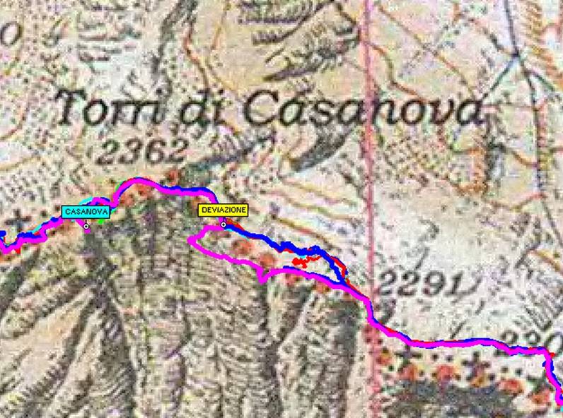 Un altro punto da tenere in considerazione è una deviazione che ci presenta dopo circa 8,3 Km dalla partenza a quota 2311, meno di una decina di minuti dopo aver lasciato il cartello indicante le Torri di Casanova: